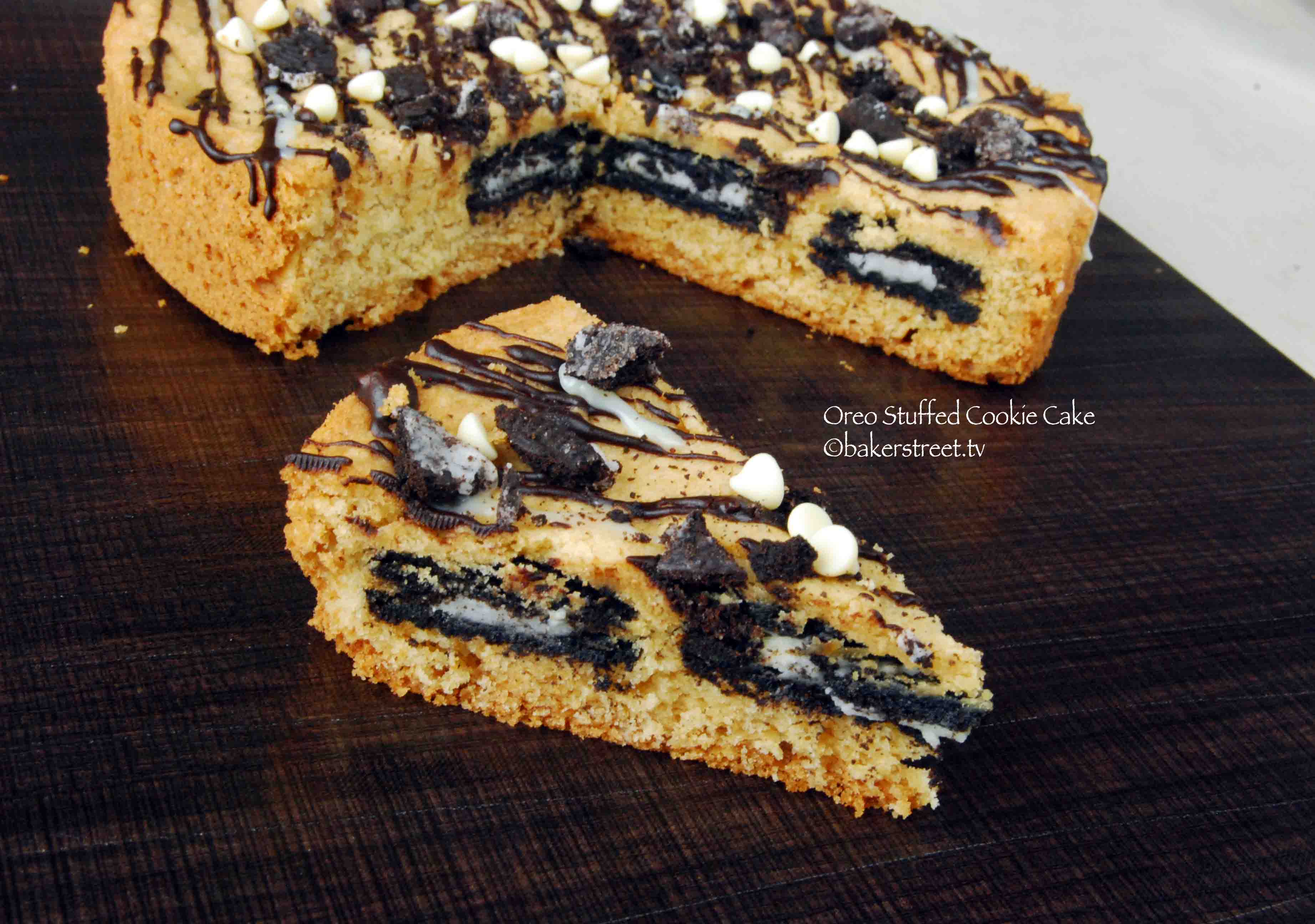 Enough said. Over to the recipe: A cookie cake stuffed with oreos!