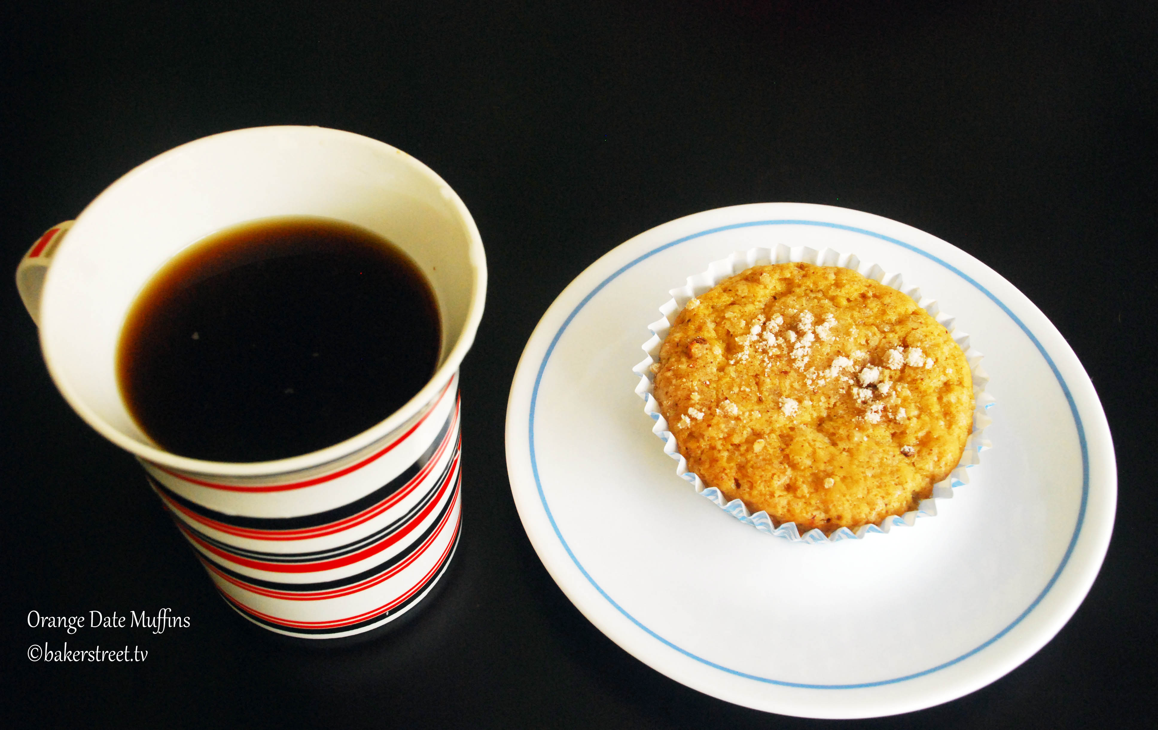 Muffin Monday is doing yet another simple recipe this week. These delicious orange date muffins – bursting as they are with a strong and very noticeable orange falvor – only take a few minutes to whip up. To make it a more complete experience, the buttermilk and melted butter give these muffins a rich and tender crumb.