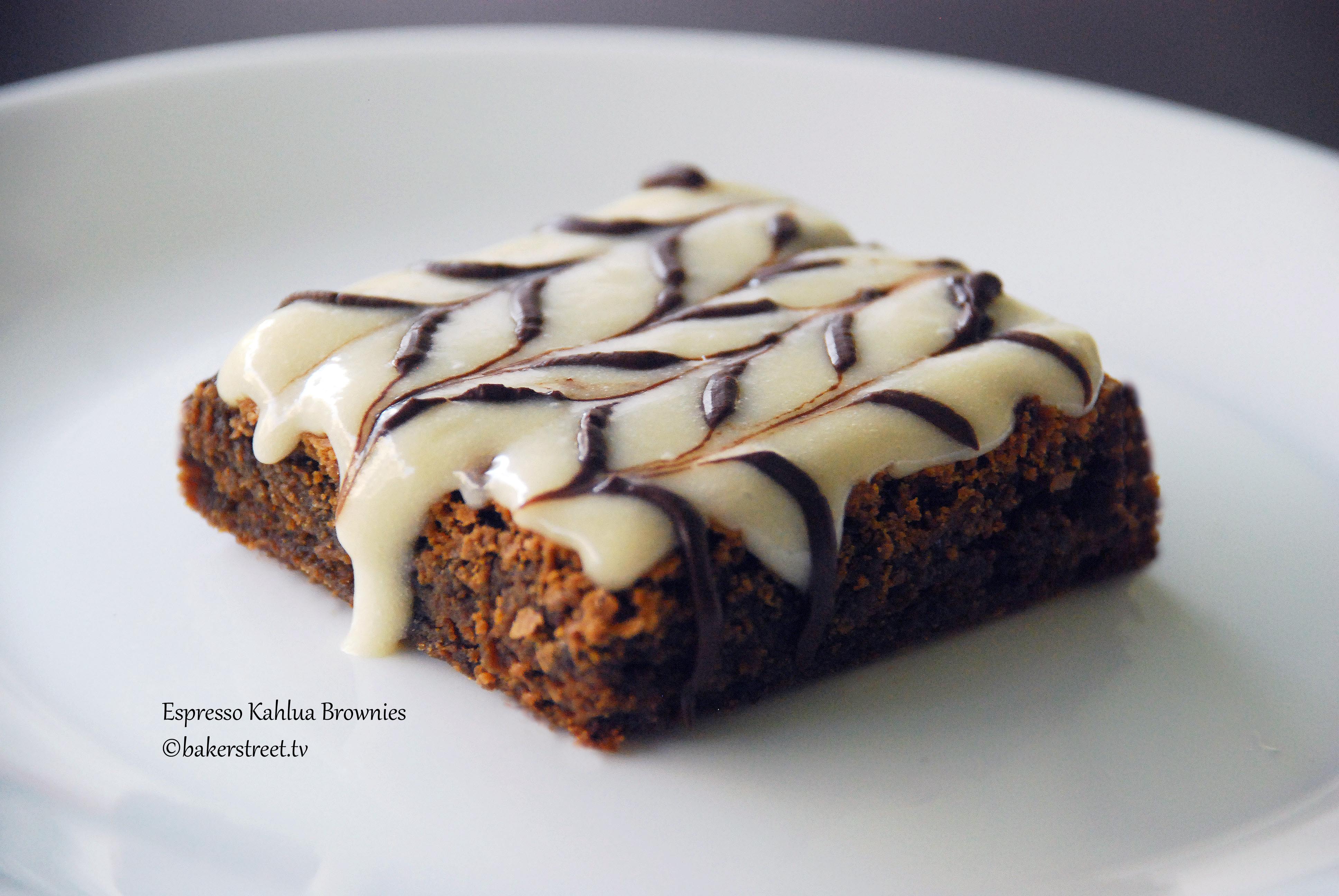 - In a large bowl with an electric mixer beat together eggs, sugar, vanilla, espresso powder, and Kahlúa until mixture is thickened and pale. Beat in chocolate mixture. Into a bowl sift together flour, baking powder, and salt and beat into batter just until blended well.