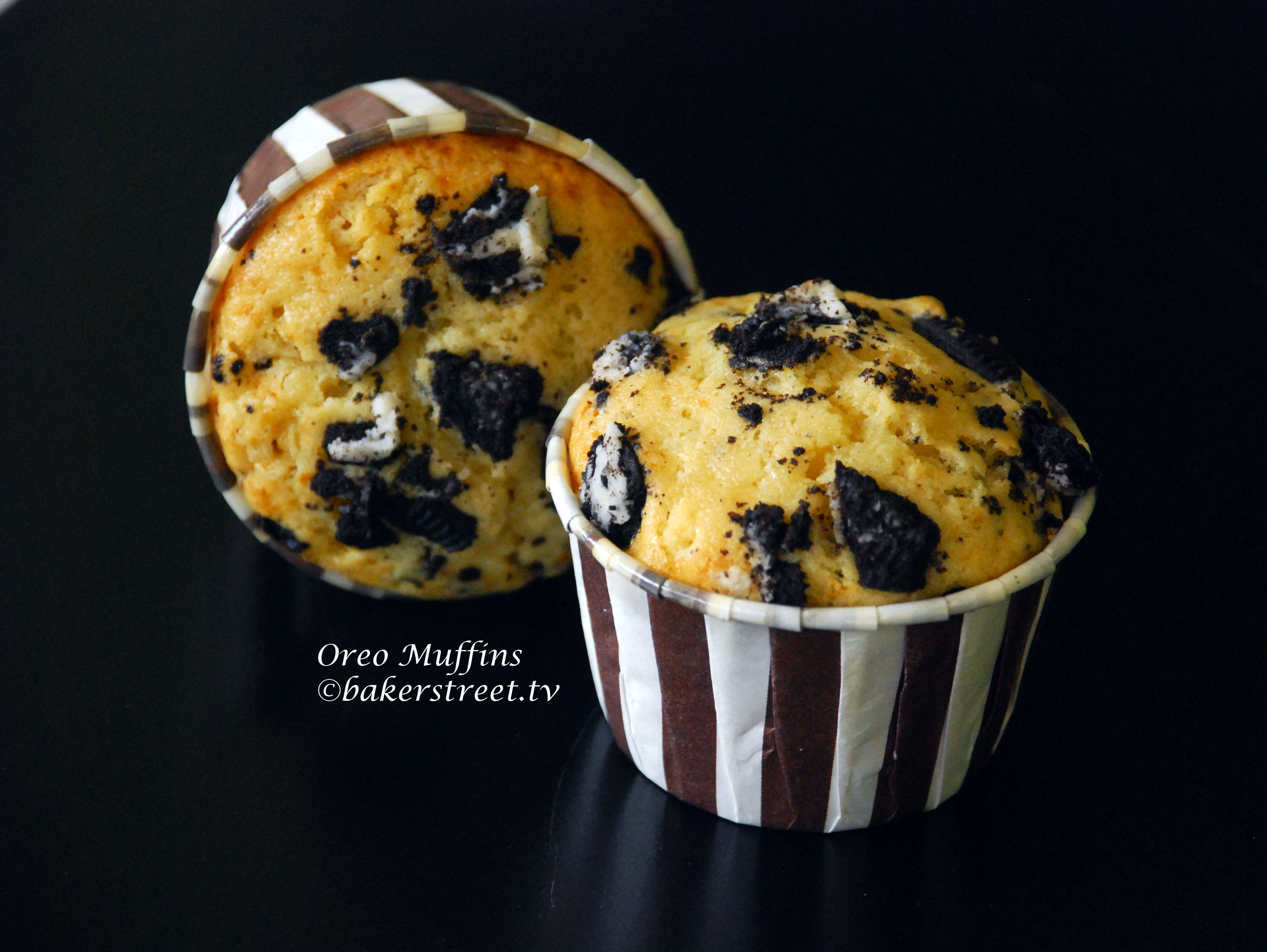 So here’s a quick kick start to 2012: in under 15 minutes they are in the oven. I replaced the margarine with butter and that combined with the milk and sour cream kept the muffins rich and soft. I saved a couple of the couple of the Oreos and added it on top as a crumble.