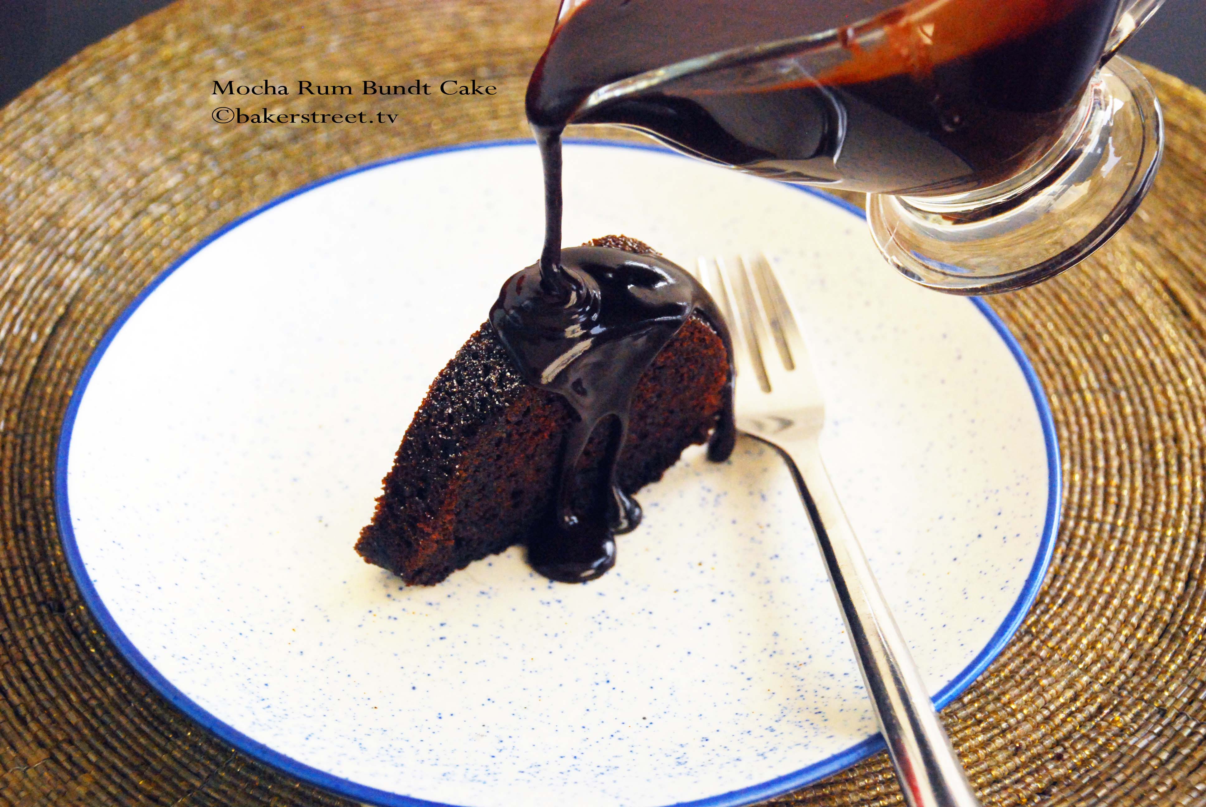 Changes and variations: If I told you the cake has only a hint of rum, I’d be lying because I upped the amount of the liquor to 1/2 cup and reduced the coffee by a fourth. Other than that, I recommend no changes at all. For the frosting I didn’t use a traditional sugar glaze but went ahead with melted chocolate laced with butter and rum. I always find frosting bundt cakes difficult for the most part, I feel there is no real method but to just pour the glaze on top. However, the gorgeous shape needed its own moment in the sun so I served the cake with the warm chocolate glaze separately. It’s up to you of course, if you don’t want to serve it with a chocolate glaze you could simply dust it with sugar or serve with a dollop of creme fraiche and tart berries.