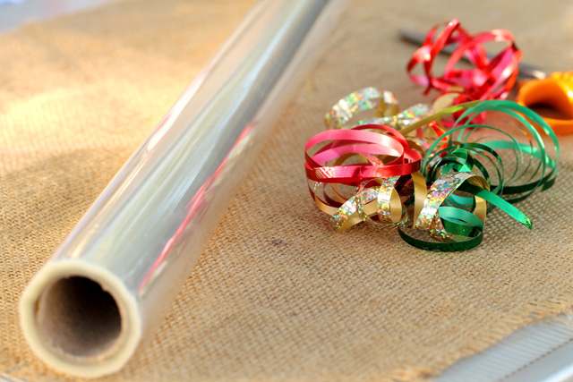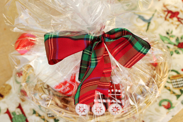 Then wrap the basket in the handy dandy transparent wrap with a ribbon and wella, a beautiful gift.