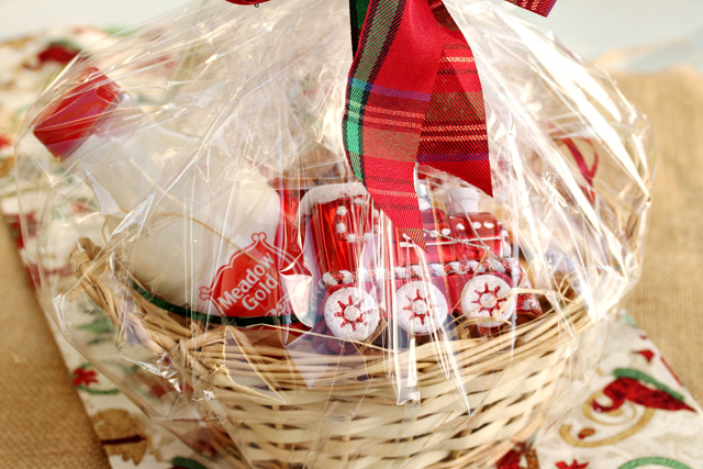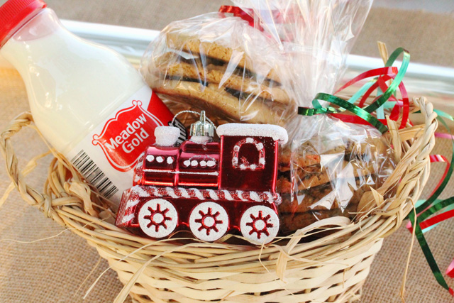 Here’s a gift basket with cookies and milk….and a cute Holiday ornament for good measure.