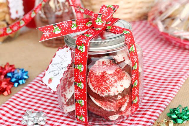 Another idea is to buy clear glass jar-type containers. They’re inexpensive and really show off the cookies.