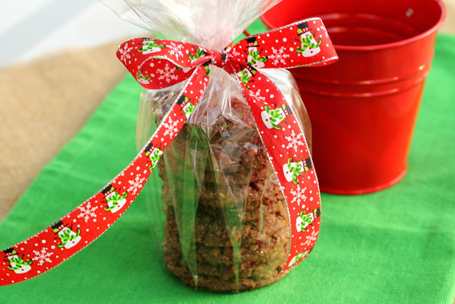 But if you want to get fancy try putting the wrapped cookies in a cute container like a small bucket, mug, or Mason jar.
